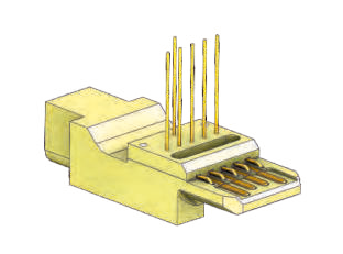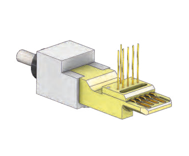 The plug contact consists of a test plug for the transmission of the digital signals that meet your specific requirements and a suitable adapter (mounting unit). Due to their built-in rubber buffers, the mounting shoes have different degrees of freedom and allow a self-centering contact. Because of these flexible fixing tolerances on the product and in the contact area can be compensated (for example in case of misalignment or deviations in the assembly). The plugs can be easily integrated into test fixtures or contacting modules. By a suitable cable assembly, the plug is connected quickly and solderless to the measuring system. This makes it easy to replace the test plugs while maintaining the system.